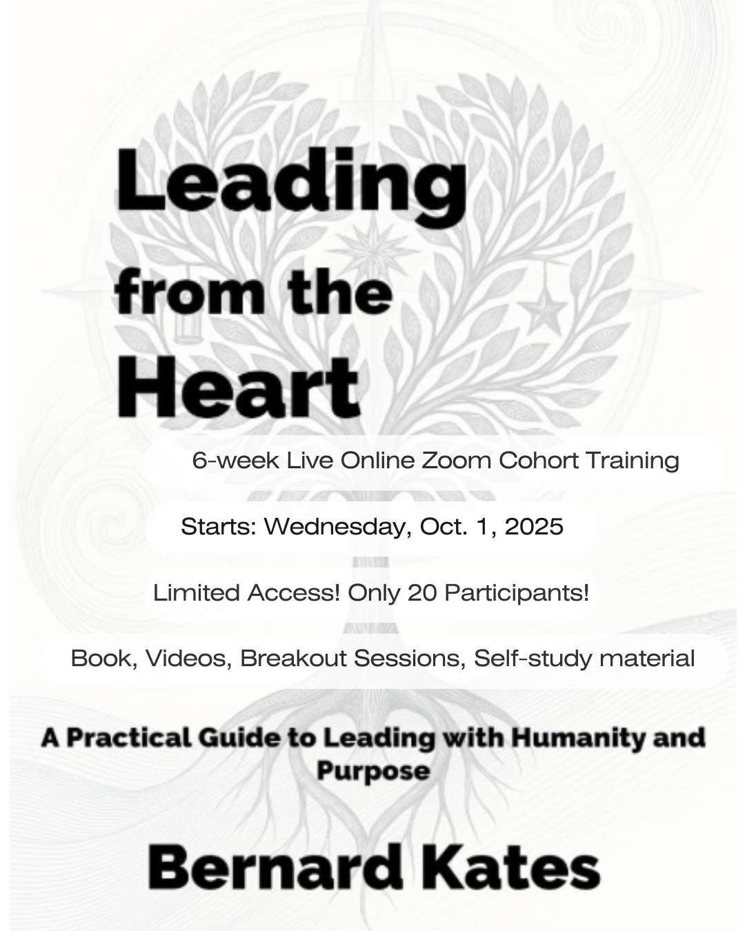 Bernard Kates, author of Living from the Heart, Leading from the Heart, and Living, Heart and Soul, together with Deborah Spaltmann of Destiny Sculpting, have created the Leading from the Heart 6-Week Cohort Training.